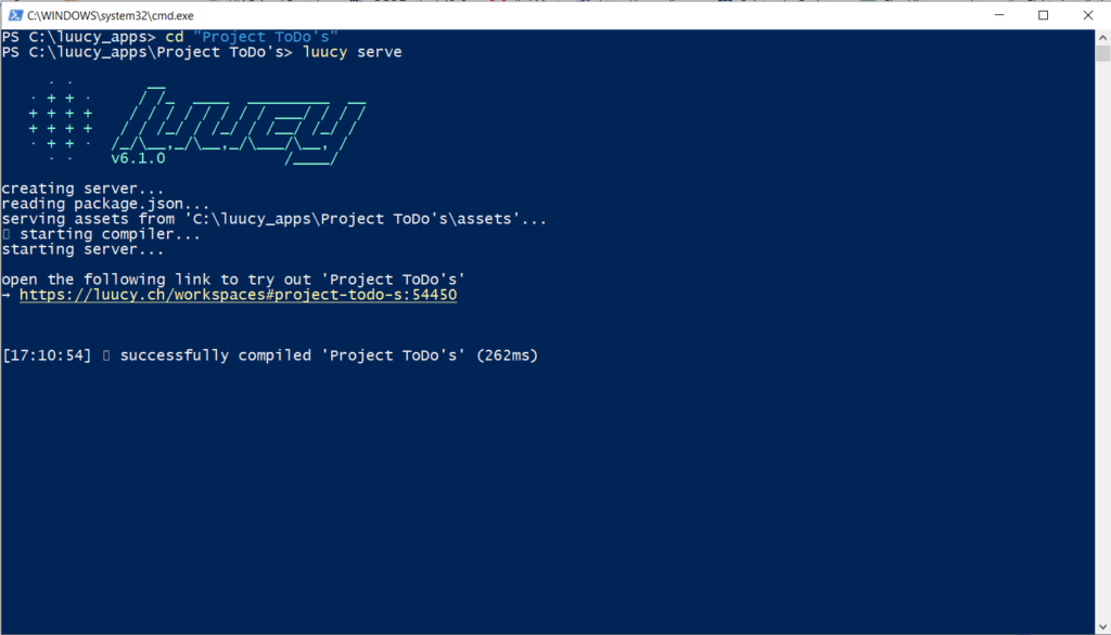 In den meisten Fällen beginnt man ein Projekt mit einer einfachen «Hello World»-Vorlage. Hierfür nutzt man die LUUCY-CLI und führt den Befehl «create» aus. Du musst dein Projekt benennen und eine Basis-Ordnerstruktur wird initialisiert und die erforderlichen Abhängigkeiten installiert.