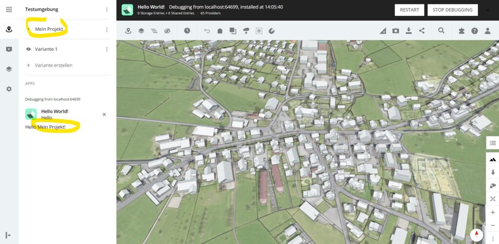 Aus dem aktiven Projekt kannst du dann den Projektnamen abrufen und unsere Beschriftung zuweisen.