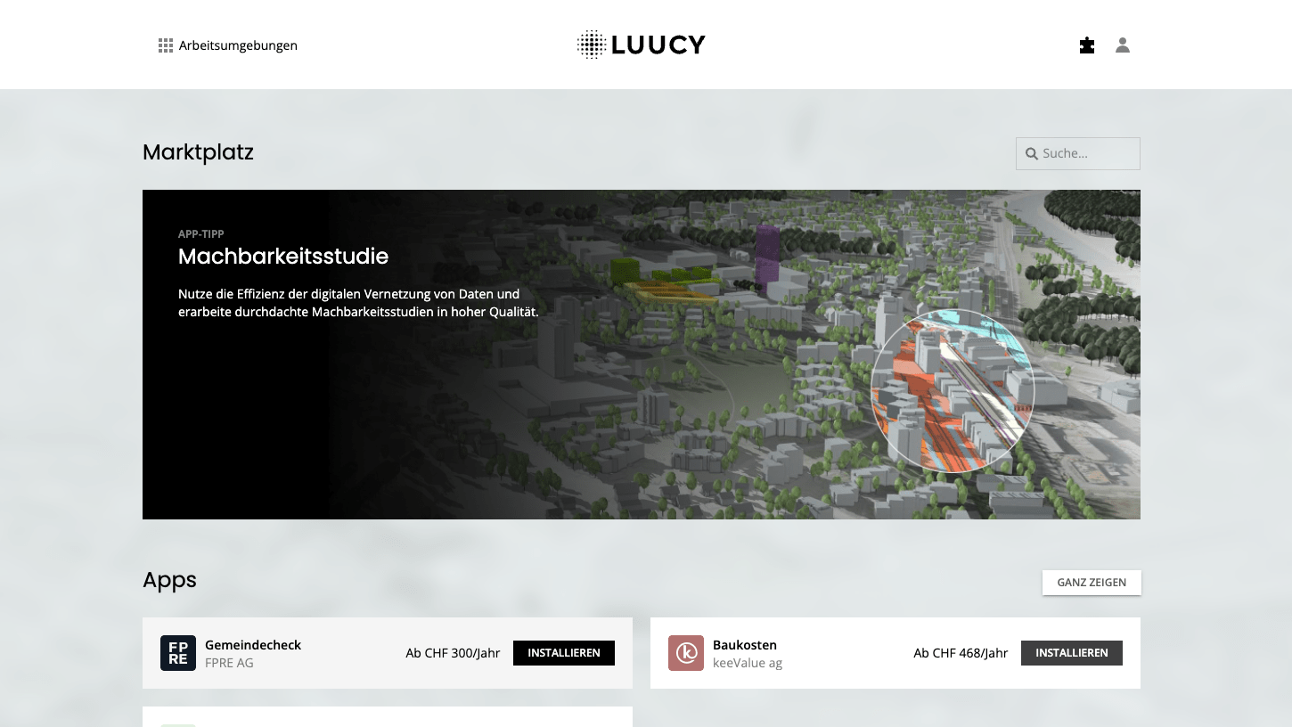Unseren Marktplatz haben wir komplett überarbeitet. Bei jedem Produkt sind detaillierte Informationen verfügbar und es kann definiert werden, in welcher Arbeitsumgebung die installierten Produkte verfügbar sein sollen.