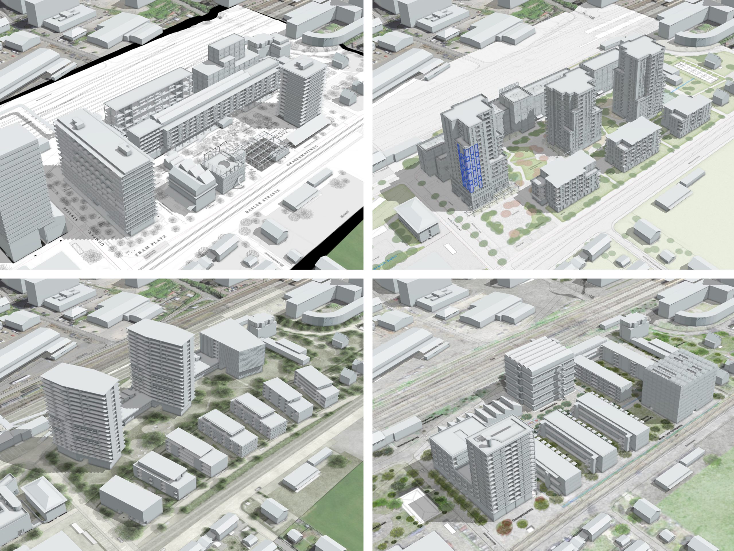 Gebäudevolumen, Schattenwurf, Terrainveränderungen oder Sichtbezüge werden direkt im räumlichen Kontext dargestellt.