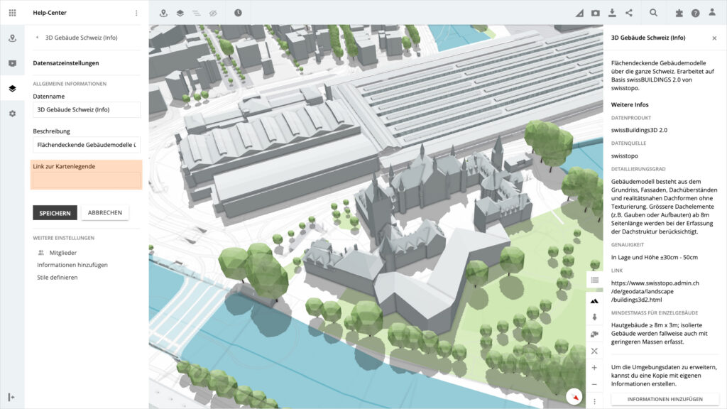 Füge eigene Kartenlegenden zu deinen Datensätzen hinzu. Rufe diese anschliessend in deinen Projekten auf, um alle wichtigen Informationen für die Umsetzung deiner Ideen zur Hand zu haben.