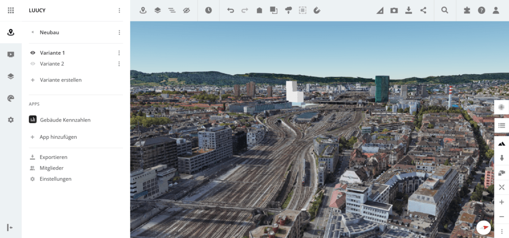 Mit dem Google Maps 3D Datensatz kannst du deine Projekte in einer texturierten 3D-Umgebung präsentieren. Nutze den Terrainausschnitt über eine Fläche um bestehende Objekte zu entfernen und platziere deine Volumen und Modelle direkt in der fotorealistischen Umgebung. Das Layer kann über den Marktplatz in die Arbeitsumgebung installiert werden und steht dann im Umgebungsdaten-Menü als Option beim Terrain zur Verfügung.