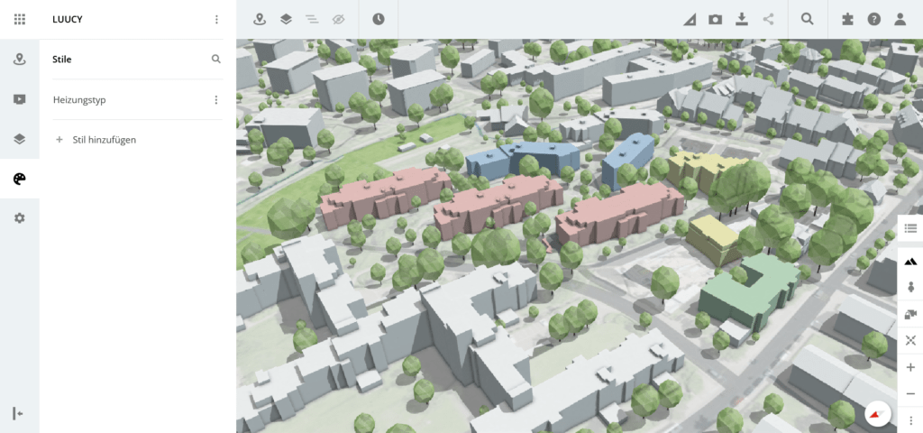 Stile werden neu global erstellt und können auf beliebig viele 3D-Layer angewendet werden. Du findest die Stilverwaltung direkt in dem vertikalen Hauptmenü. Die Zuweisung der Stile erfolgt in der Umgebungsdatenliste beim entsprechenden Layer.